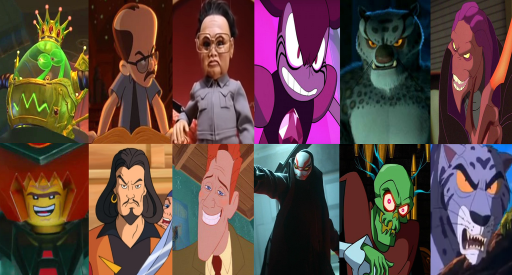 This includes hand drawn cgi styled and stop motion cartoons. Cartoon villains appearing in animated shows andor films.