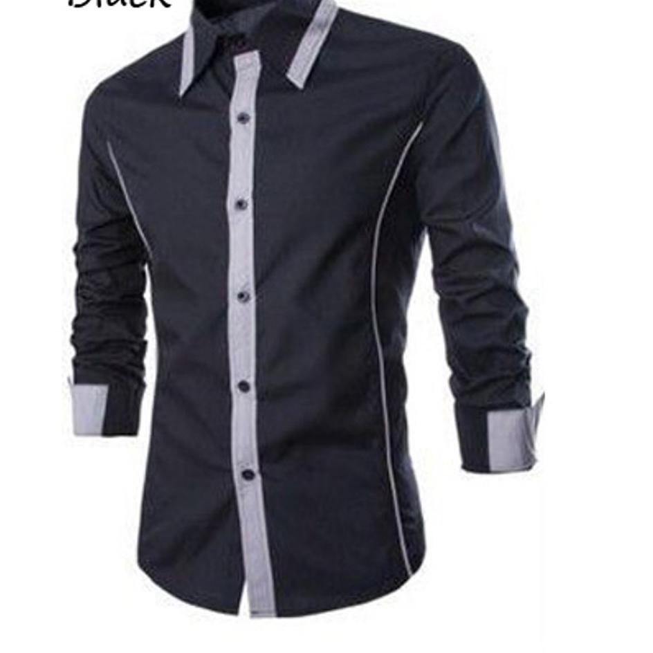 Baju Kemeja Pria Lengan Panjang Kemeja Slim Fit Warna Hitam Kancing Putih Baju Kemeja Pria